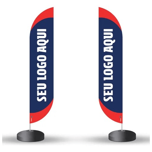 1 Wind Banner Completo para Piso G – Modelo Ângulo – em Tecido Poliéster 98g – Base Plástica – Haste Desmontável Curva (57004)