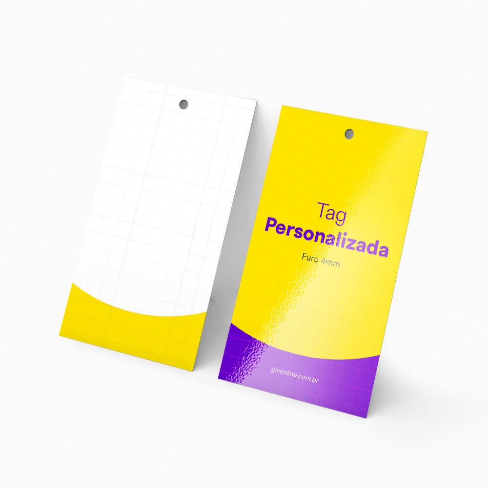 1000 Tag Personalizada – 48x88mm em Couché Brilho 300g – 4×4 – Verniz Total Brilho Frente – Furo 4mm (4352)